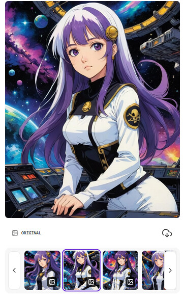 Mais le prompt ne fait pas tout, car les générateurs d’images sont aussi dotés d’options et d’outils. Pour reprendre l’exemple de MidJourney, qui est ce que je maîtrise de loin le mieux, il y a tout d’abord la possibilité de générer des variations (au choix fortes ou légères) sur une image. Ce qui permet généralement de se rapprocher par étapes de plus en plus précises de ce qu’on a en tête. Il y a également la possibilité d’effacer une partie uniquement de l’image pour la regénérer (très pratique pour effacer des artefacts trop saillants). On peut également passer une image dans un prompt, ou fusionner plusieurs images, ce qui permet aux plus talentueux (dont je ne fais pas partie) de réutiliser un même personnage dans plusieurs images. On peut aussi changer l’échelle, remixer en retravaillant un prompt à partir d’une image déjà générée, appliquer l’ensemble de ces options à une partie seulement de l’image, etc.