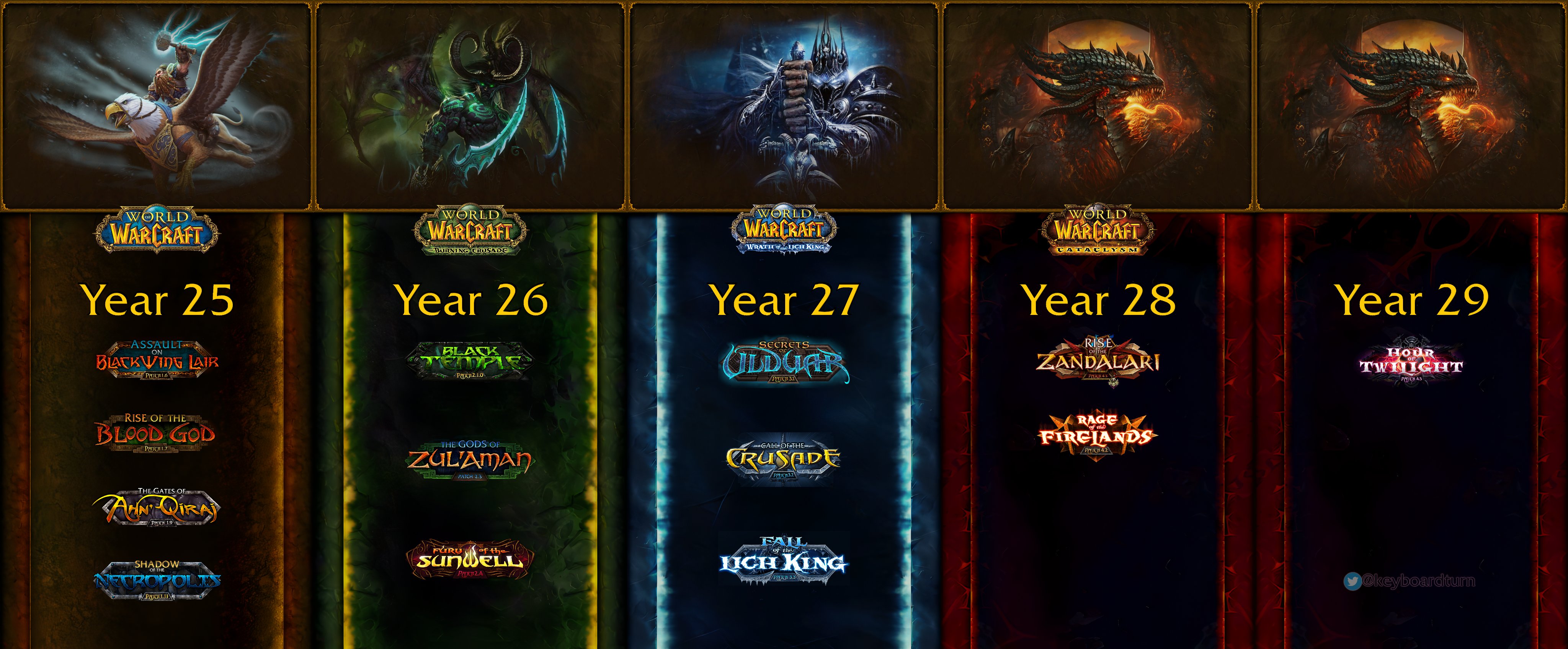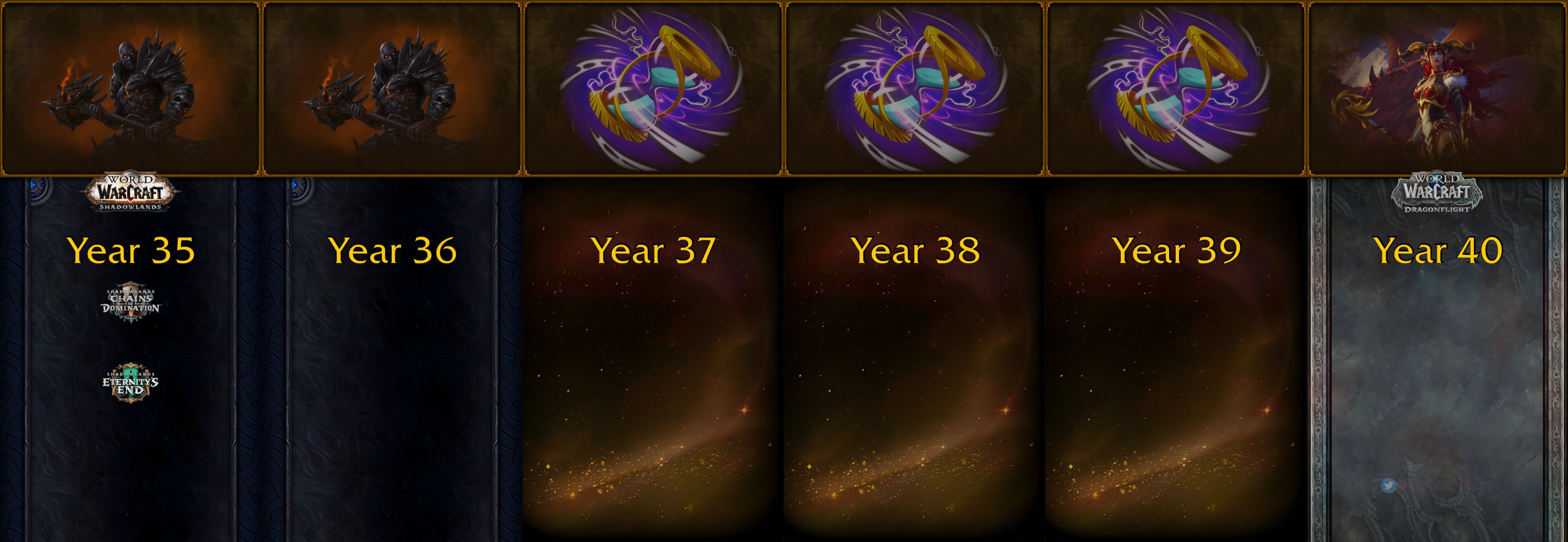 La timeline de WoW a été « dévoiler » ( Pas vraiment enfaite, c’est une fan qui l’a sortie des donnés du jeu, elle est pas 100% fiable. Bien que des dates soit exactes. ) Je me suis amusée à calculer l’âge d’Anduin sous la prochaine extension de WoW donc " Dragonflight" Il a 25 ans maintenant !! Il a prit 5 ans d’un coup. xD Si on part de l’An35/ L’An36 c’est actuellement dans le jeu. ( Tout les aventuriers d’Azeroth quitte le royaume des morts. ) Les habitants d’Azeroth, ils ont quasiment aucun moment de répit…