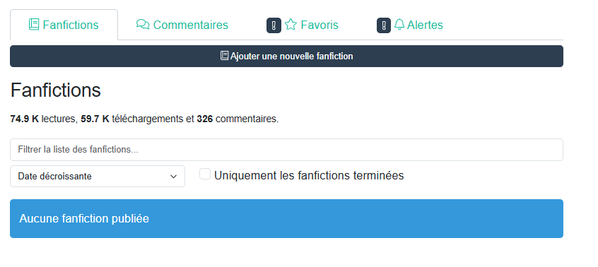 Avez-vous accès à votre tableau de bord, rubrique Mes fanfictions ?