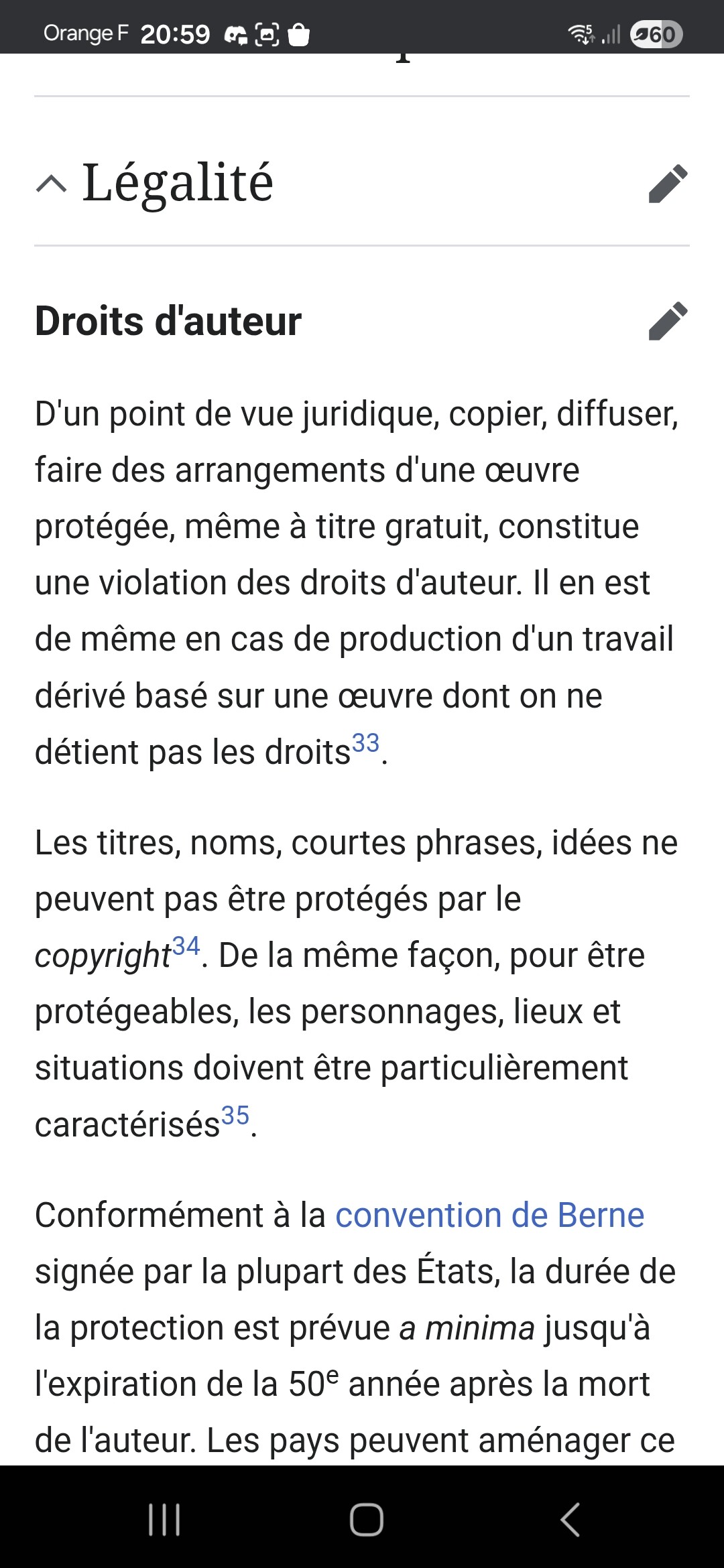 Tout un chapitre « Légalité » qui parle du droit d’auteur et qui reprend la belle reponse d’old girl.