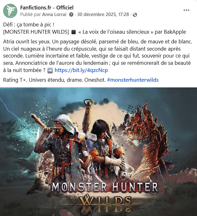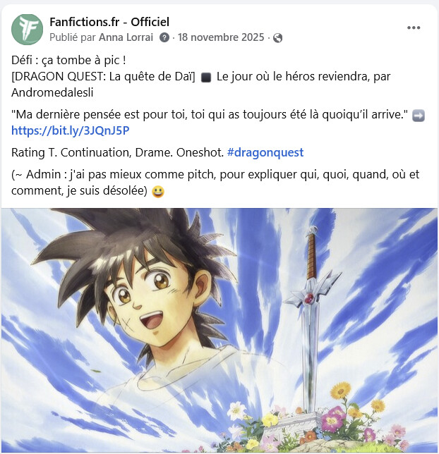 Pour les illustrations des fanfictions, il faut une image car c’est elle qui fera que le post sera vu un minimum. Sans image, ce n’est même pas la peine.
