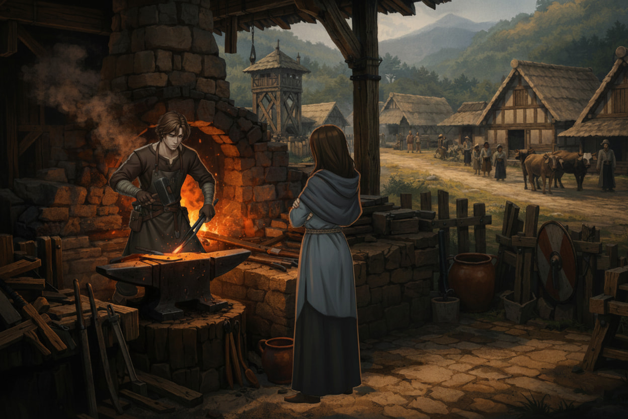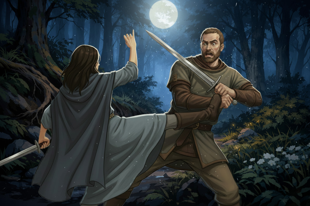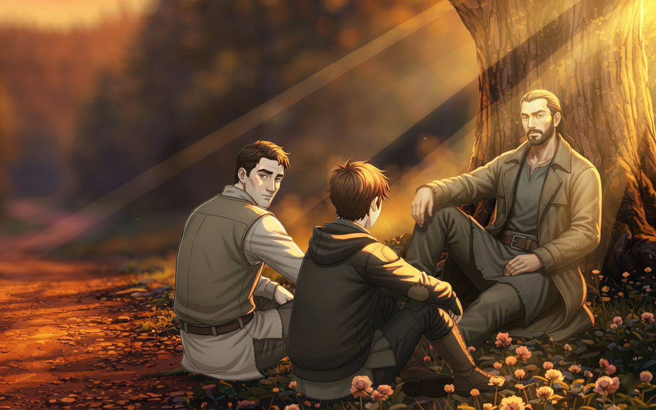 Extrait : À la tombée de la nuit, Aélis le trouva seul, assis sous un grand chêne en retrait du hameau. Le clair de lune glissait sur son visage, révélant des traits graves mais paisibles. Elle s’approcha doucement, hésitant un instant avant de briser la solitude de l’homme.