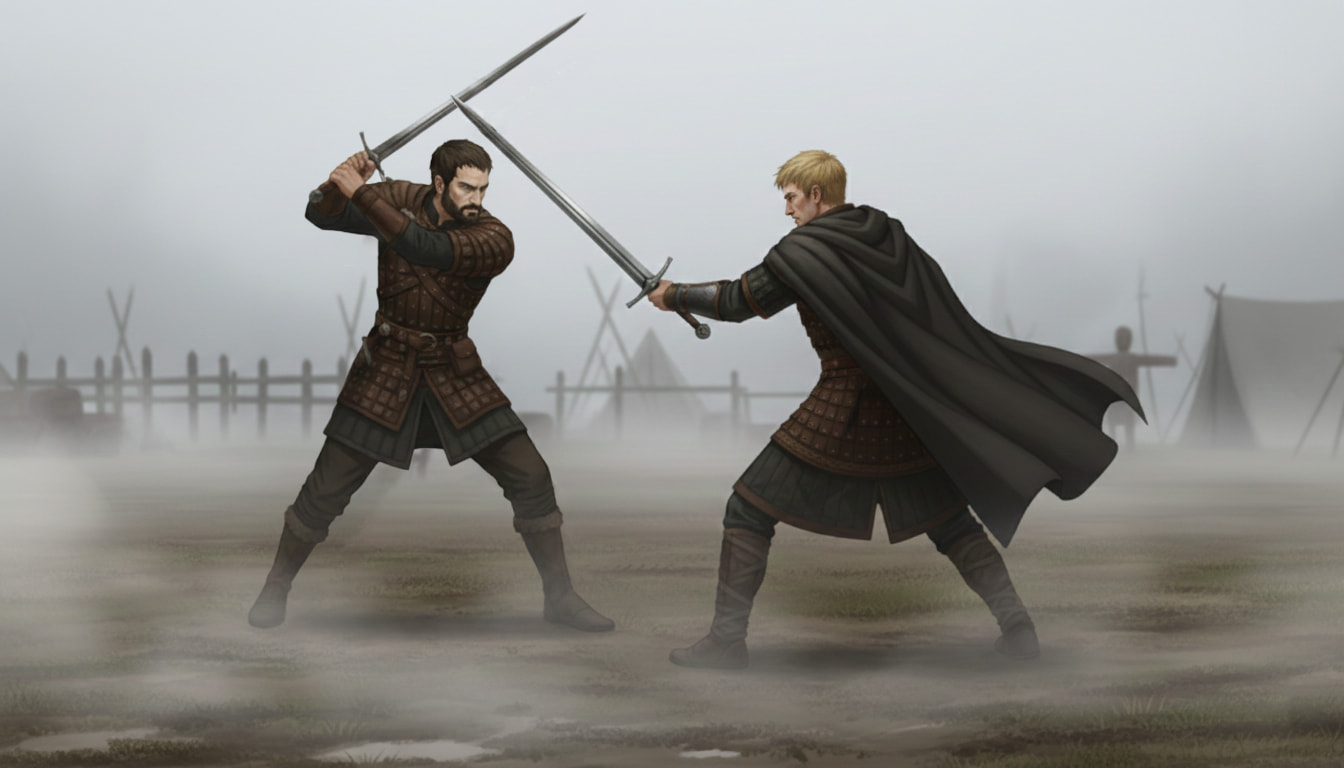 La Montagne s’avançait, son épée massive reposant sur son épaule comme une promesse de mort imminente. Elle sentit son souffle se raccourcir. Elle était à sa merci. Ses pensées s’embrouillèrent, un mélange de terreur et de résignation. Est-ce que c’était ainsi que tout devait finir ? La douleur dans son flanc pulsait, mais c’était son impuissance qui l’écrasait.