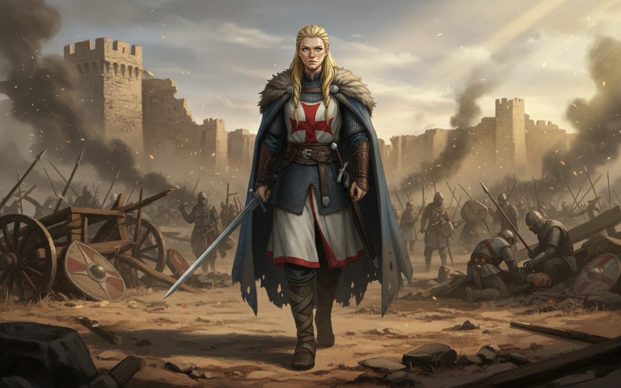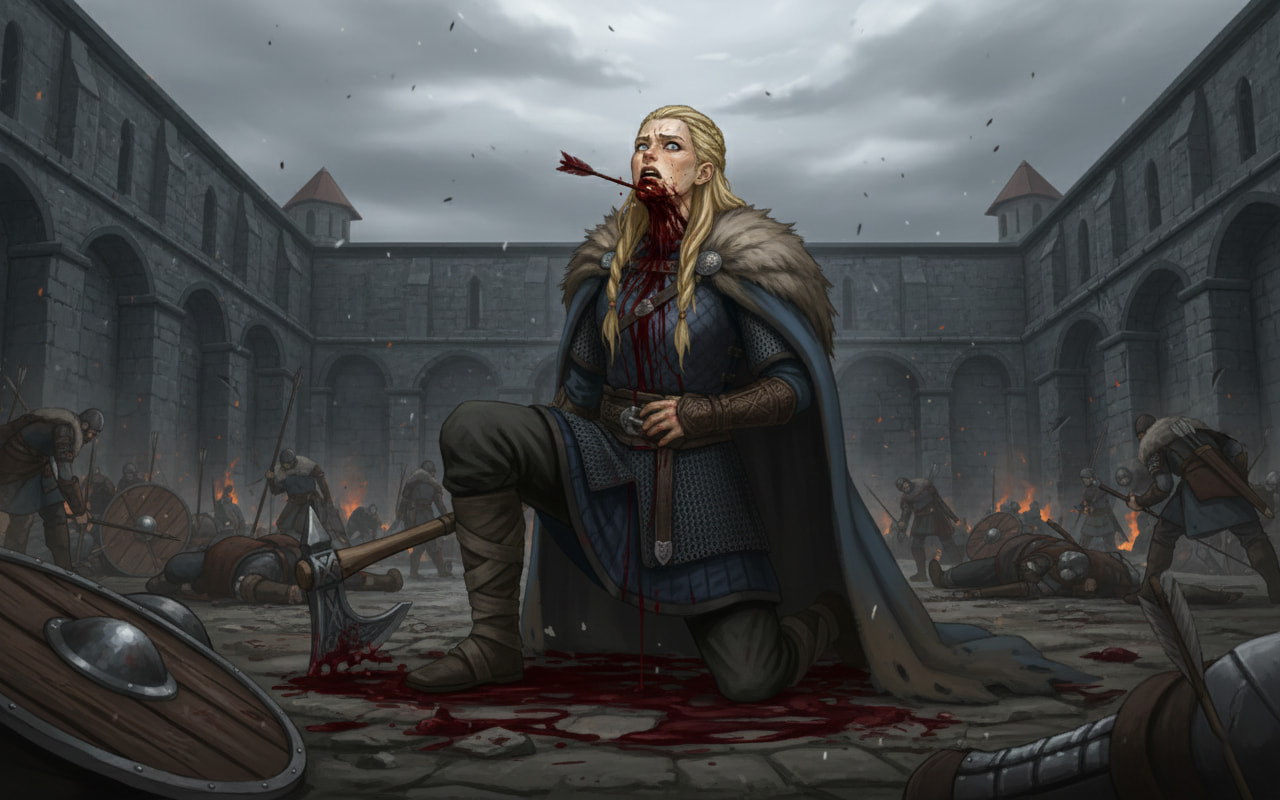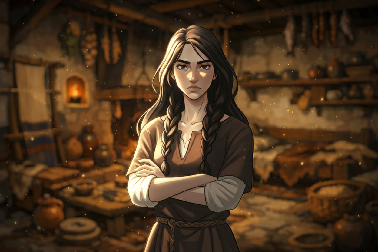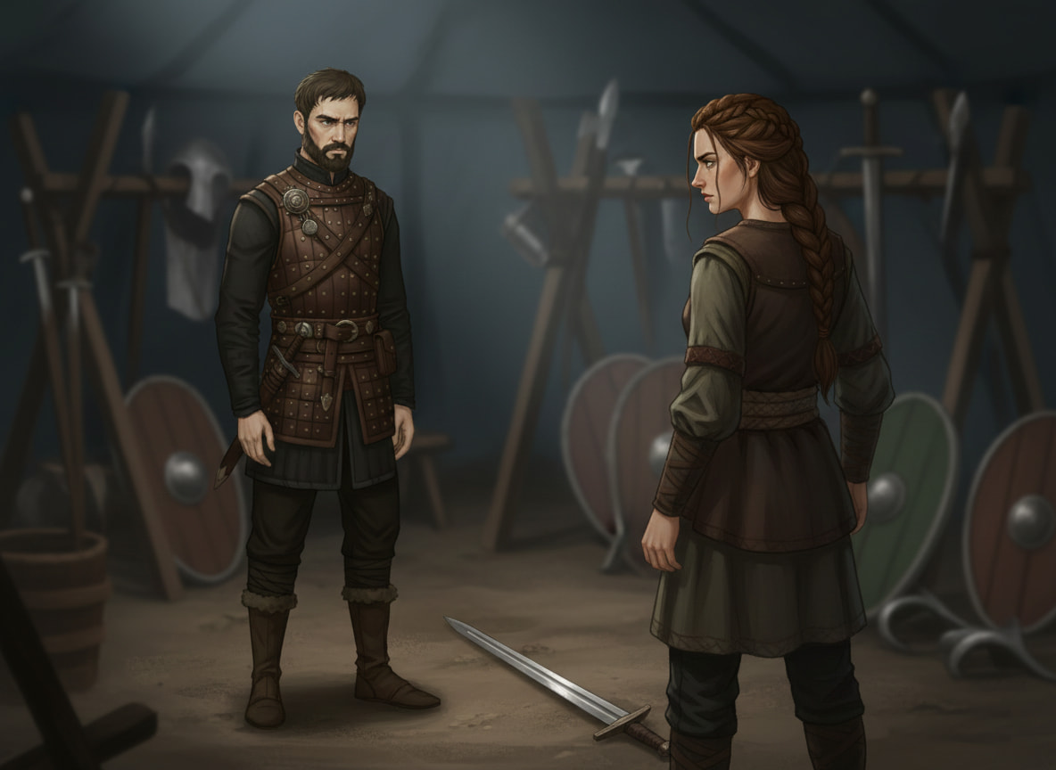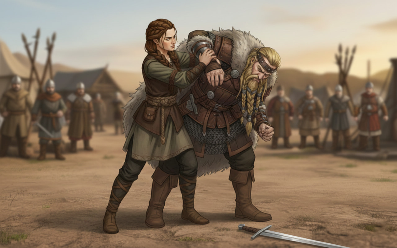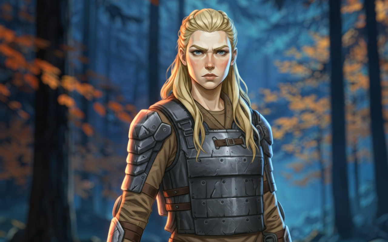 Son père était un jarl, dur comme les haches qu’il maniait. Sa mère, morte trop tôt pour qu’elle se souvienne de sa voix. Elevée parmi les cris des hommes et les hurlements du vent, elle grandit sans tendresse mais sans peur. Elle maniait l’épée avant même de savoir lire. On lui apprit à tenir un bouclier, à tuer proprement, à sentir la houle avant qu’elle ne se lève. Elle savait lire les marées, les visages, les alliances. Elle ne priait aucun dieu, pas même Odin. Pour elle, seuls les vents et les morts parlaient vrai.