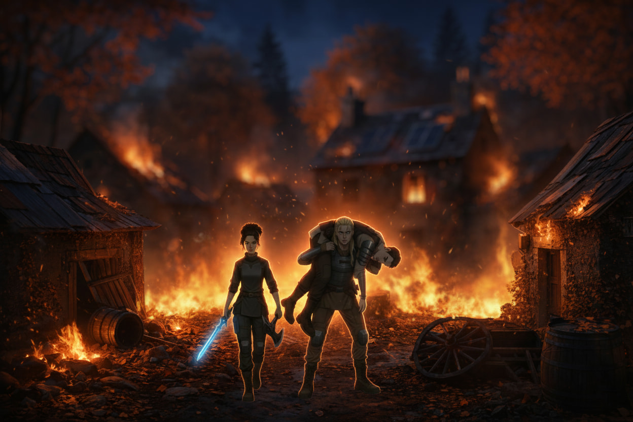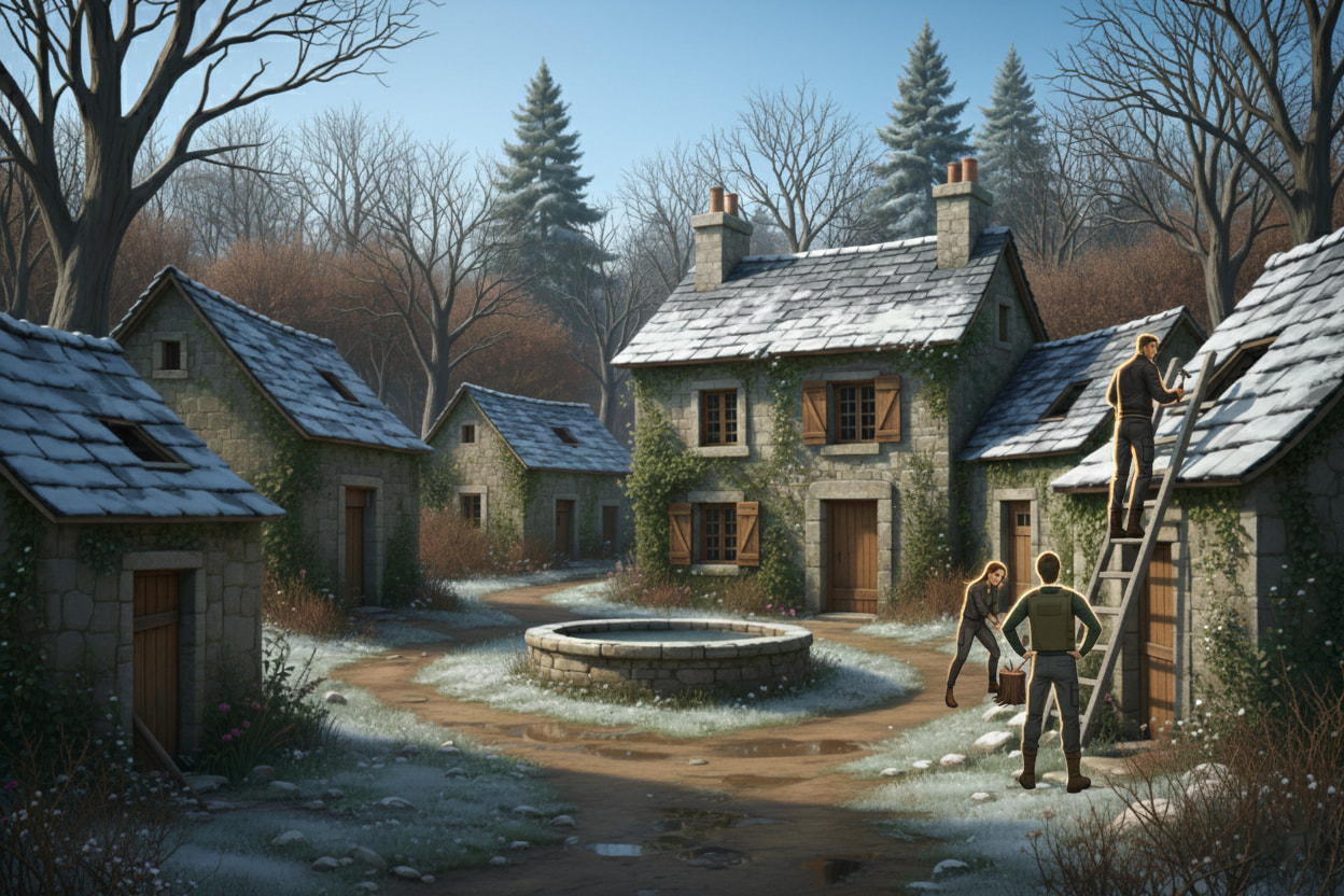 Teaser : Methos et Aélis s’installent dans un hameau déserté, un refuge paisible bientôt animé par l’arrivée de nouveaux compagnons.