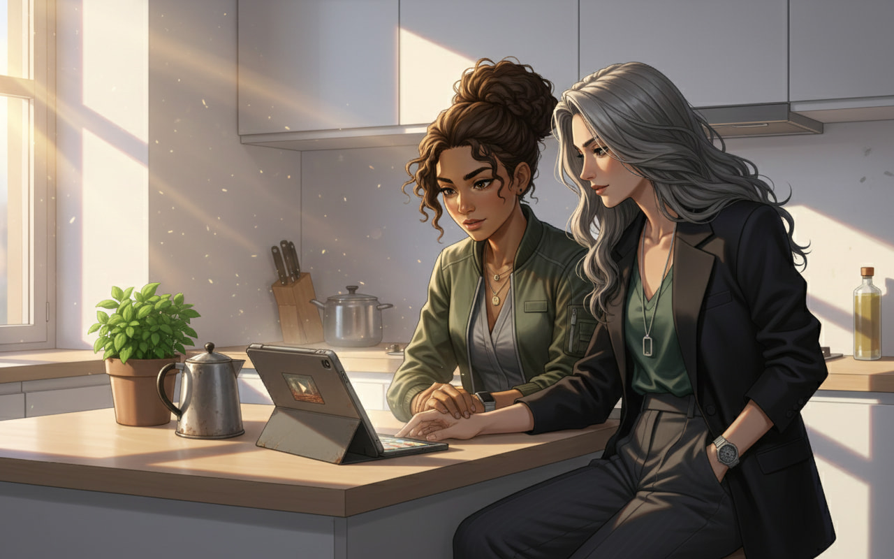Un frisson remonta le long de son dos. Instinctivement, elle chercha dans son esprit l’image familière qu’elle avait toujours portée en elle : le visage grave du prêtre immortel, son regard empli de sagesse. Mais elle ne trouva que le présent. Thalia, son rire, la chaleur du soleil sur sa peau, l’instant suspendu entre elles.