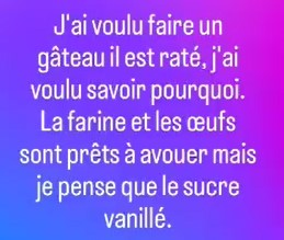 Eh ben, la farine et les œufs ne sont pas sortis du pétrin s’ils passent aux avœufs ! Quant à faire avouer le sucre, ça sera pas du gâteau… La farine et les œufs lui casseront-ils du sucre sur le dos pour lui faire payer sa lâcheté ? Ou croira-t-il échapper à la justice en racontant des salades ?…