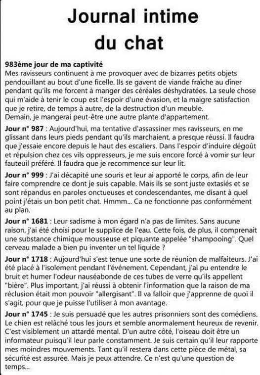 Bon, je relance d’une clownerie très verbeuse que j’ai vue passer sur ma page fb, il y a deux jours… (ça me rappelle un livre pour enfants « Journal d’un chat assassin »