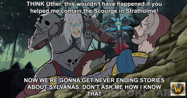 Tout est ta faute UTHER !! ( le meme fait référence à une scène de la série d’animation ''invincible" ( sinon les personnages sont de WoW.)