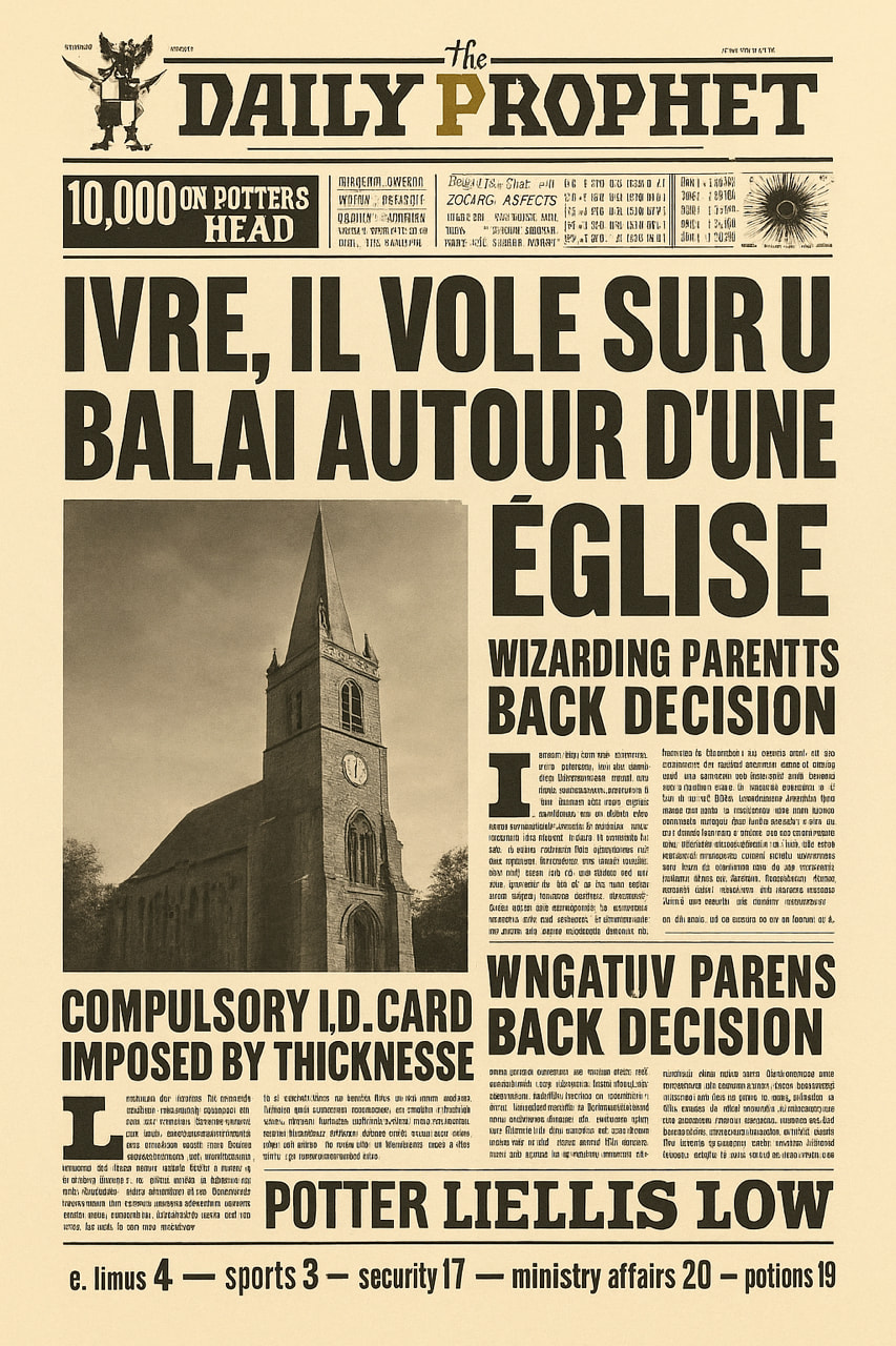 Quatrième histoire : Ivre, il vole sur un balai autour d’une église moldue !