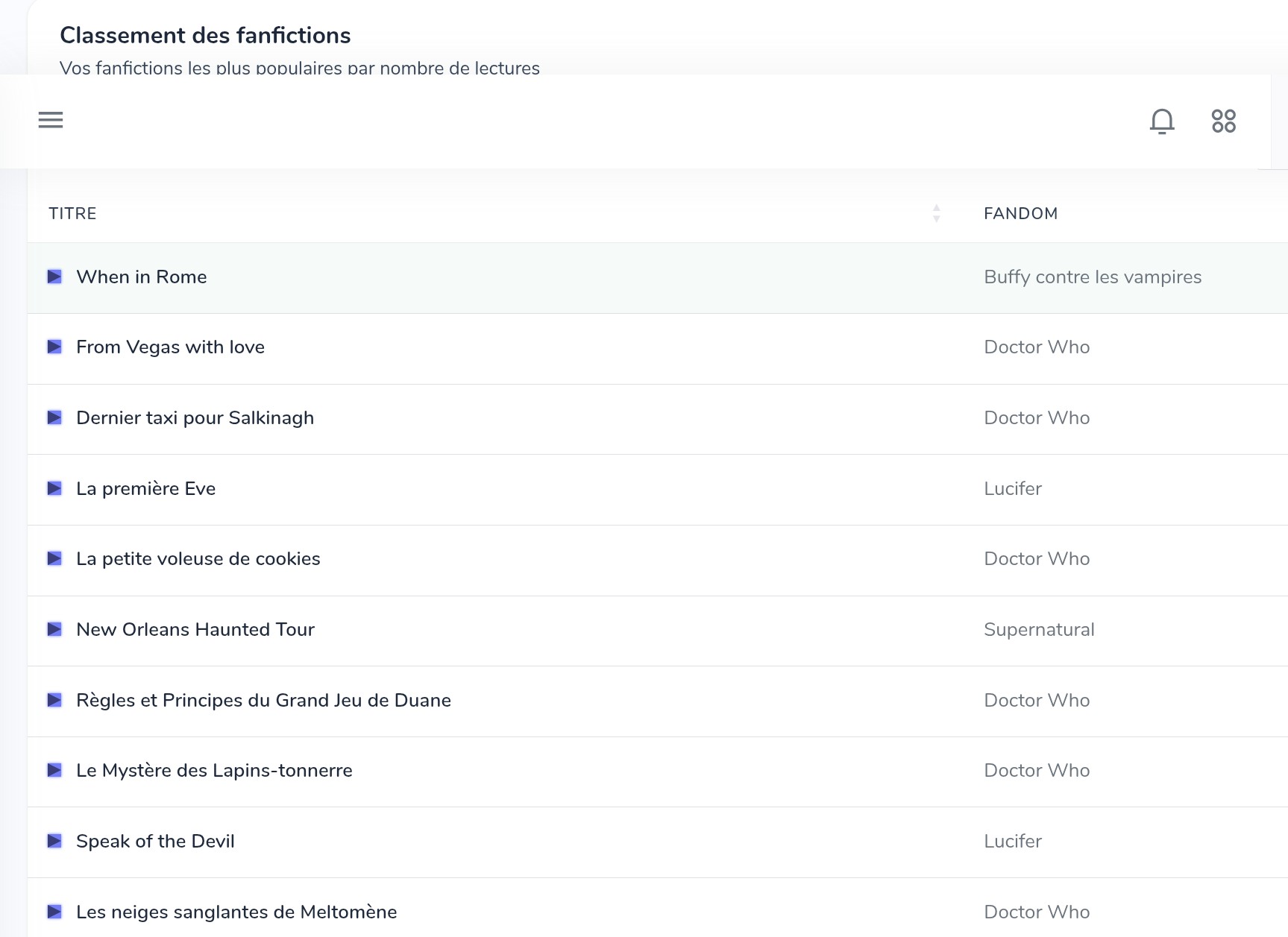 La liste de mes fanfics qui performe (en nombre de vues)