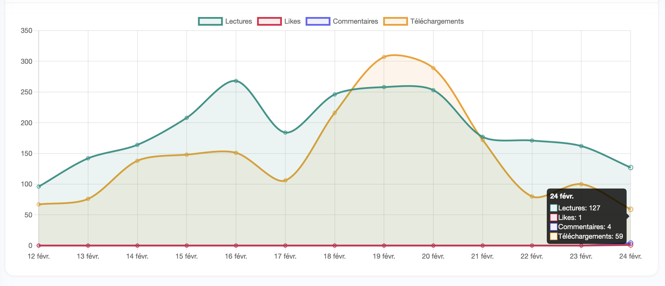 Je trouve bien encourageant les infos en temps réel des lectures, des likes, des commentaires et des téléchargements.