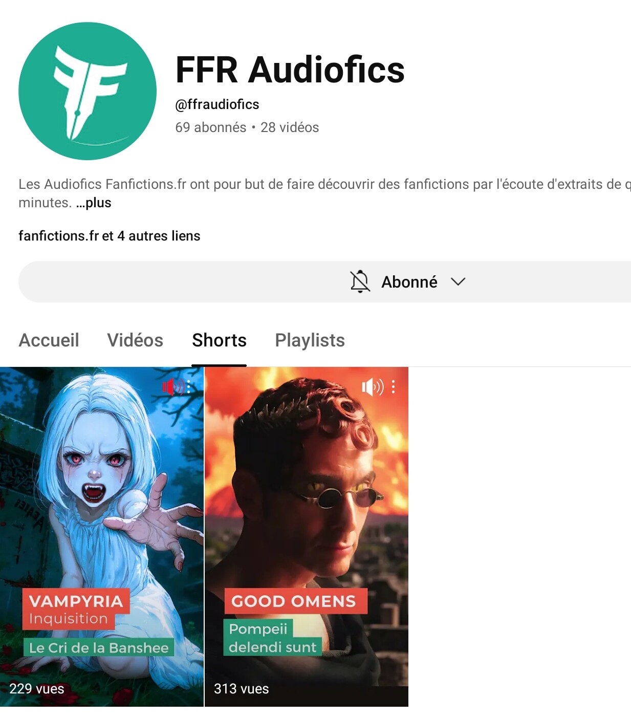 Aux cĂŽtĂ©s de nouvelles audiofics, peut-ĂȘtre certains abonnĂ©s ont-ils vus Ă©merger timidement ce que nous appelons affectueusement des « ApĂ©rifics » : elles portent le nom de shorts sur YouTube et ne peuvent matĂ©riellement pas excĂ©der 3 mn.