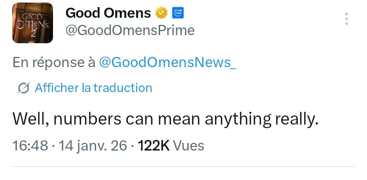 Mais ça m’a bien fait rire moi grâce à ça, ce que je me dis c’est qu’il y a un monde français, ou Rampa parle avec la voix Aziraphale ( ou qu’ils ont fait un échange de voix ) ( si seulement ça veut dire quelque chose ou ça a du sens XDD mais moi en tout les cas ça me tue de rire j’adore ! )